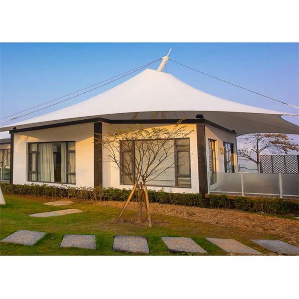 The top of the house is made of PVDF architectural membrane material with strong tensile properties. The weight of the PVDF membrane used herein is typically 1050 grams. We can make roofs of various shapes according to customer requirements, such as quadrilateral, hexagon, one vertex, two vertices, four vertices and so on.